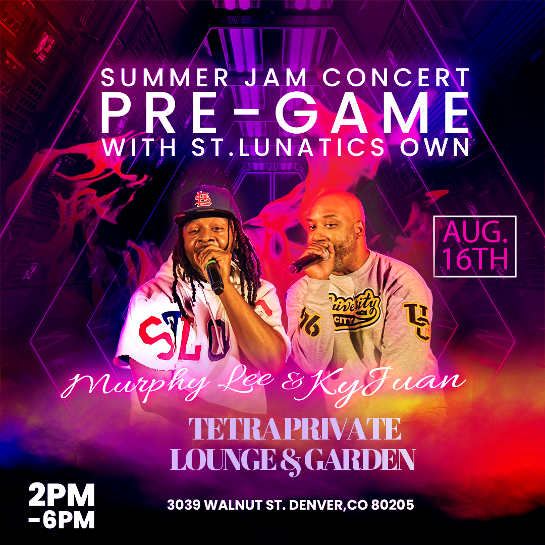 From Shake Ya Tailfeather to Air Force Ones, St. Lunatics’ Murphy Lee & Kyjuan bring an afternoon of live hip-hop, cannabis-friendly vibes, and summer heat to Tetra Lounge. BYOWeed and join Denver’s ultimate day party on Aug 16, 2025.